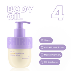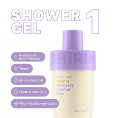 Gönn dir das komplette Set mit allen vier Produkten aus Shirins persönlicher Bodycare Routine mit dem unwiderstehlichen Duft Creamy Blueberry Caramel Bliss. Für ein rundum verwöhntes und gepflegtes Hautgefühl, das dich und deine Haut zum Strahlen bringt.